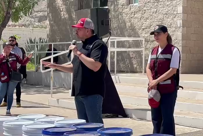 Acompañado por su esposa y presidenta del DIF, Rubí Enríquez, y por el director de Desarrollo Social, Hugo Vallejo Quintana, el alcalde entregó kits con cemento, impermeabilizante, pintura y hule, como parte de la estrategia para apoyar a quienes perdieron parte de su patrimonio.