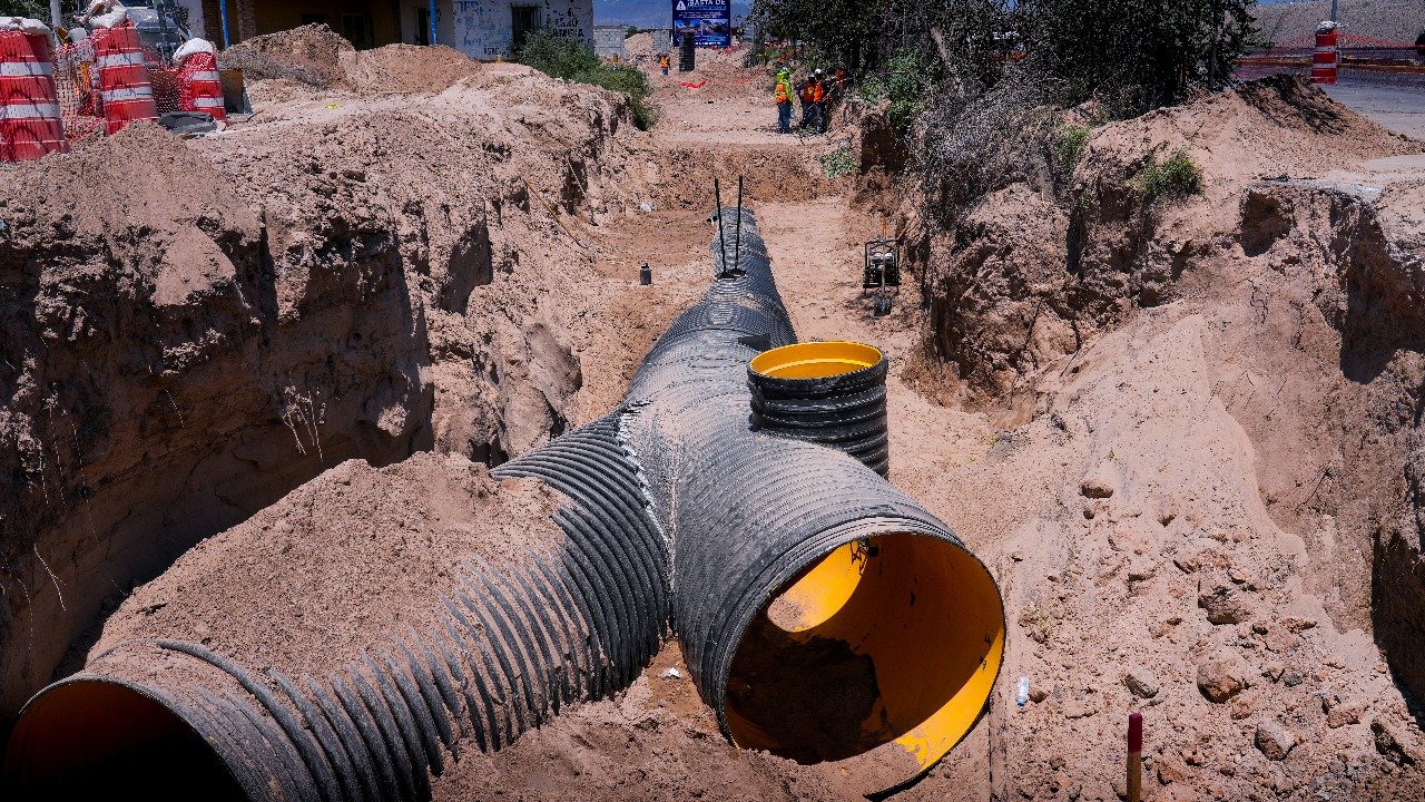 Ciudad Juárez.– La Junta de Agua y Saneamiento (J+) lleva a cabo el reemplazo de un tramo del Colector Cuatro Siglos, luego de detectar que presentaba riesgo de colapso. El objetivo es prevenir hundimientos y garantizar la seguridad de quienes circulan por la zona.