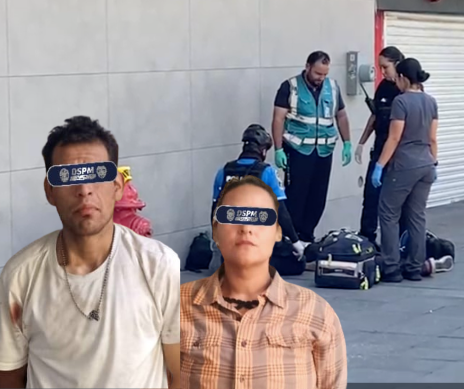 Luego de varios minutos, elementos de la Municipal lograron la detención de un hombre de 25 años de edad identificado como Jesús Adrián V.J., de 25 años como por probable responsable de la agresión, junto al agresor fue detenida una mujere que lo acompañaba identificada como María Guadalupe B., de 33 años quien al momento de realizarle una revisión se le localizaron porciones de una sustancia con caracteristicas similares al cristal, por lo cual quedó también detenida.