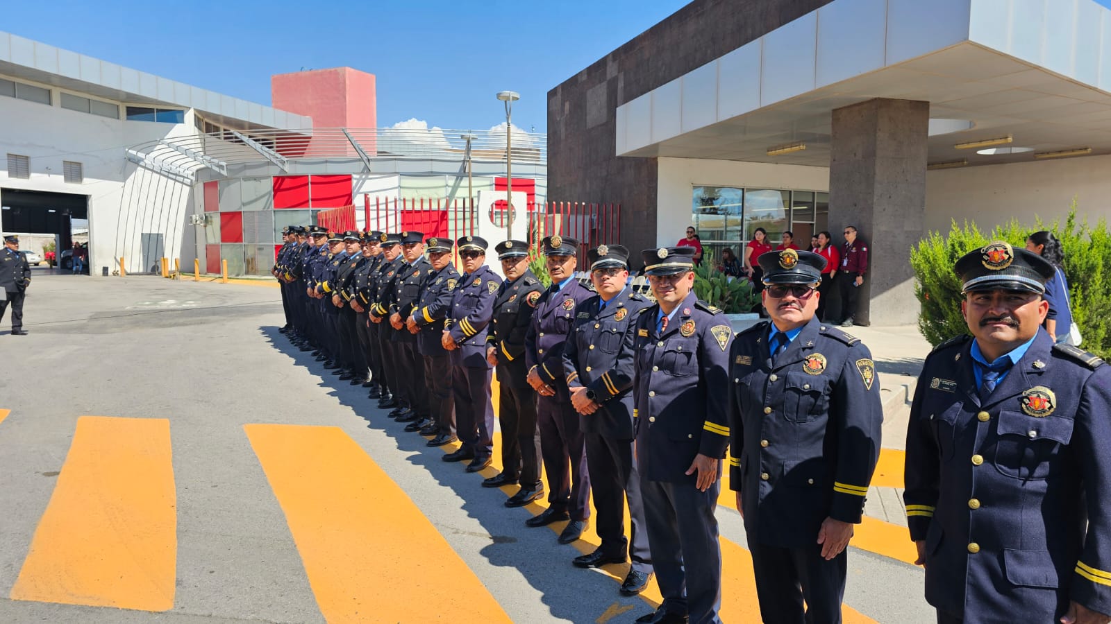 Ciudad Juárez.– Elementos del Heroico Cuerpo de Bomberos recibieron este viernes un homenaje con motivo de su día, en una ceremonia realizada frente a sus instalaciones ubicadas en la avenida Heroico Colegio Militar, con la presencia del alcalde Cruz Pérez Cuéllar y autoridades de Protección Civil.