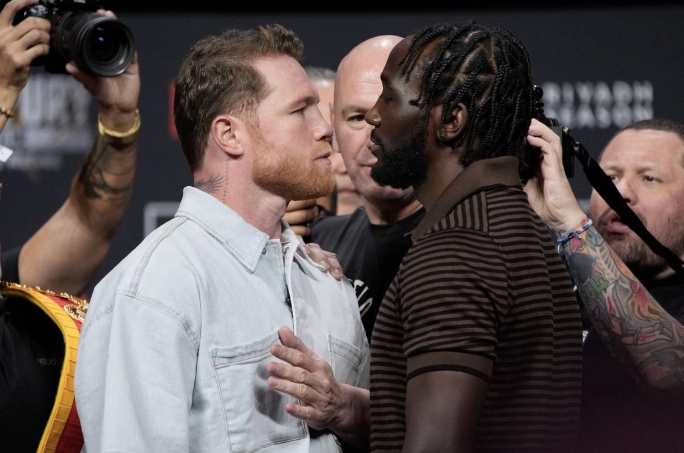 En el combate, que se celebrará en el Allegiant Stadium -el cual tiene un aforo para 65 mil personas-, Canelo pondrá en juego sus cinturones de campeón indiscutido del peso supermediano (168 libras – 76.2 kg).
