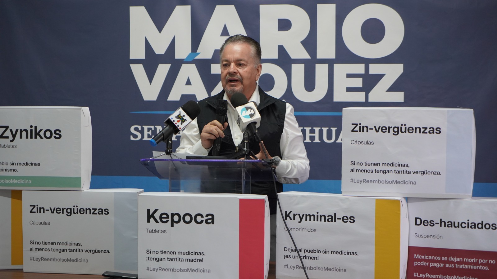Chihuahua, Chih., a 30 de septiembre del 2025.- “Si el gobierno no tiene medicinas, que te las pague”, sentenció el Senador Mario Váquez Robles del PAN por Chihuahua, al dar a conocer la iniciativa Ley Reembolso promovida por el Grupo Parlamentario a propuesta del Senador Agustín Dorantes.