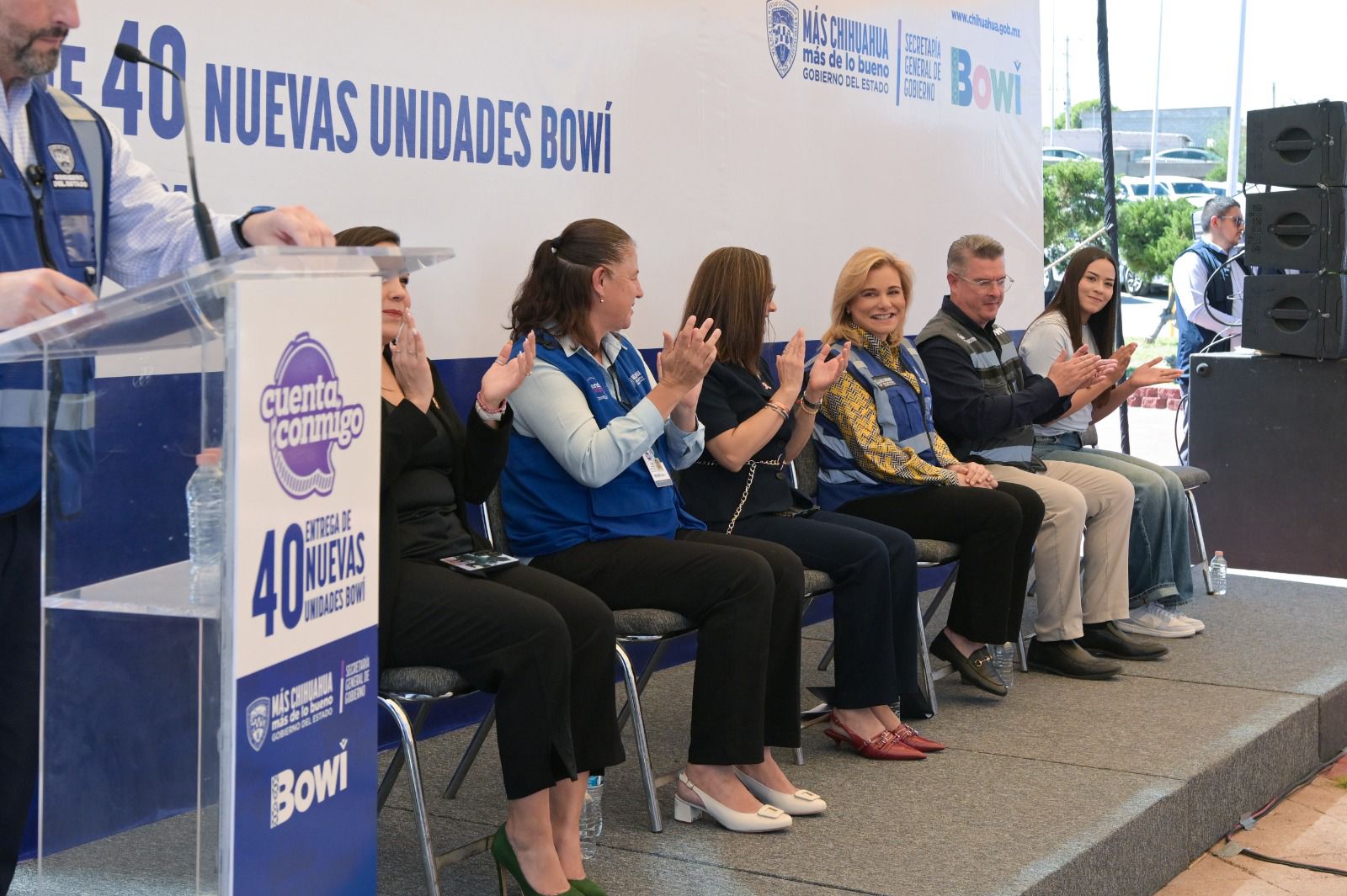 Durante el evento, la mandataria reconoció el compromiso del secretario general de Gobierno, Santiago De la Peña, para sacar adelante este proyecto. También anunció que cuatro de estos camiones darán cobertura a la ruta UACH-Bowí, destinada exclusivamente para los estudiantes universitarios.