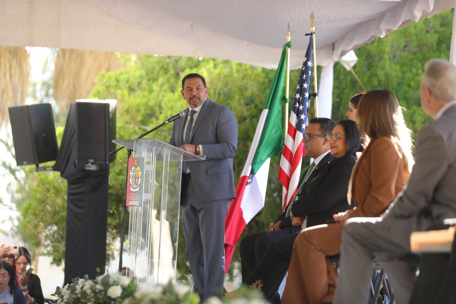 El evento se llevó a cabo en el Monumento Conmemorativo de El Chamizal, donde el alcalde destacó la importancia de la relación México- Estados Unidos, fundamental para ambos países.